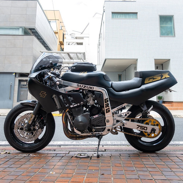 インスタグラムによると、GR71(GSX-R750の初期型)のもののようです。ヘッドライトのバランスはそう思ったのですが、サイドのダクト部分が初見でわかりませんでした。こういった仕様のものもあったんですね。ディープな世界です。。。
